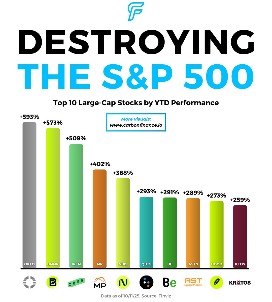 Oklo leads the list, up nearly 600%, as enthusiasm grows around nuclear energyโs role in powering the AI era.