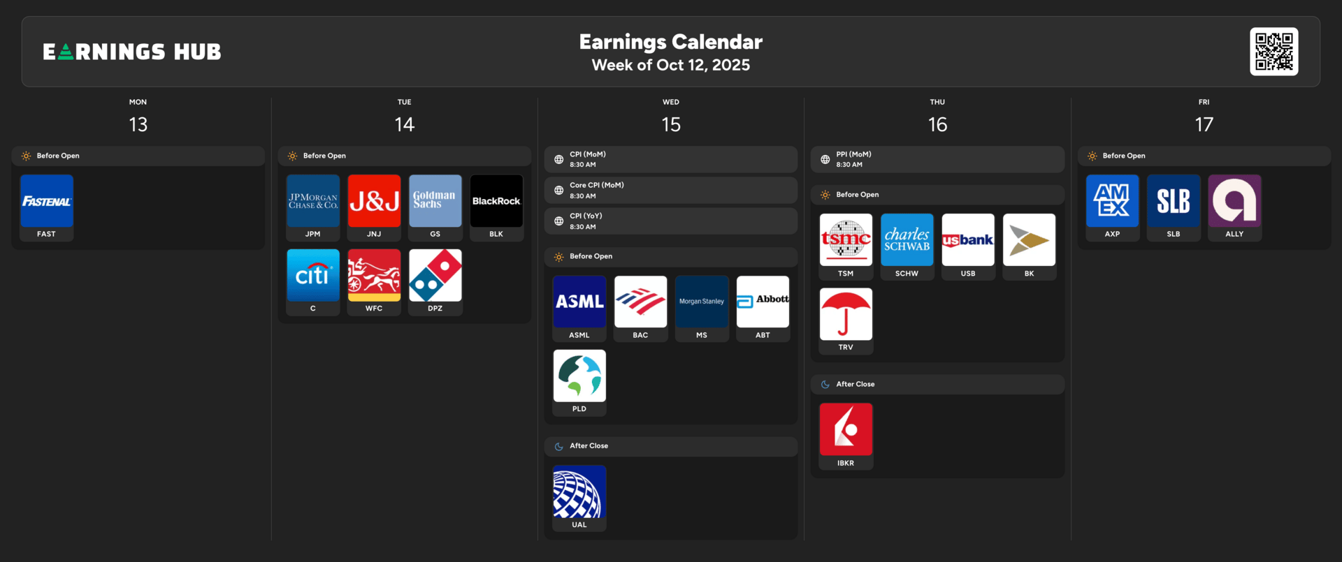 Notable Companies Reporting Earnings Week of October 12th, 2025: