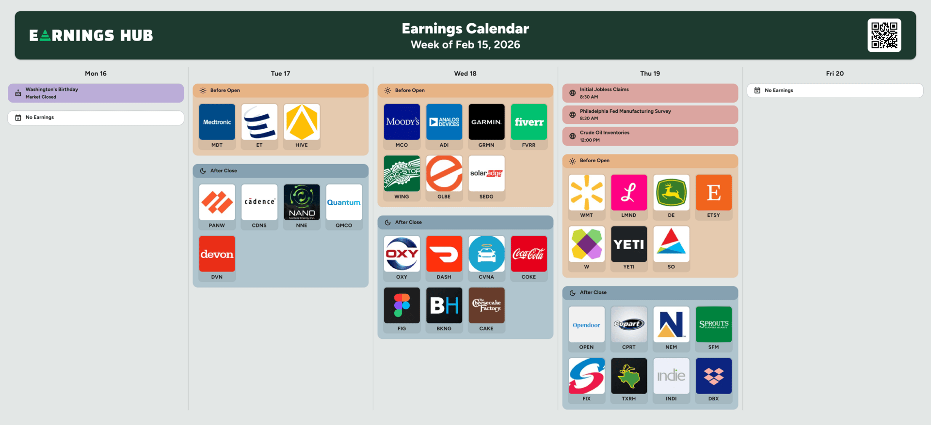 Notable Companies Reporting Earnings Week of February 16th, 2026: