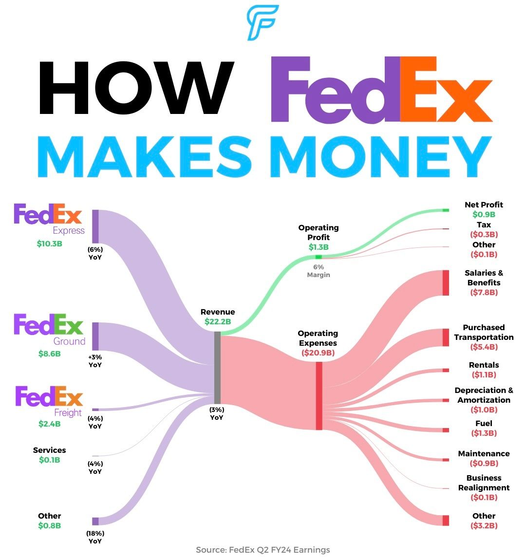 FedEx’s largest segment, Express, saw revenue decline by 6% due to lower demand and customers switching to more affordable services.