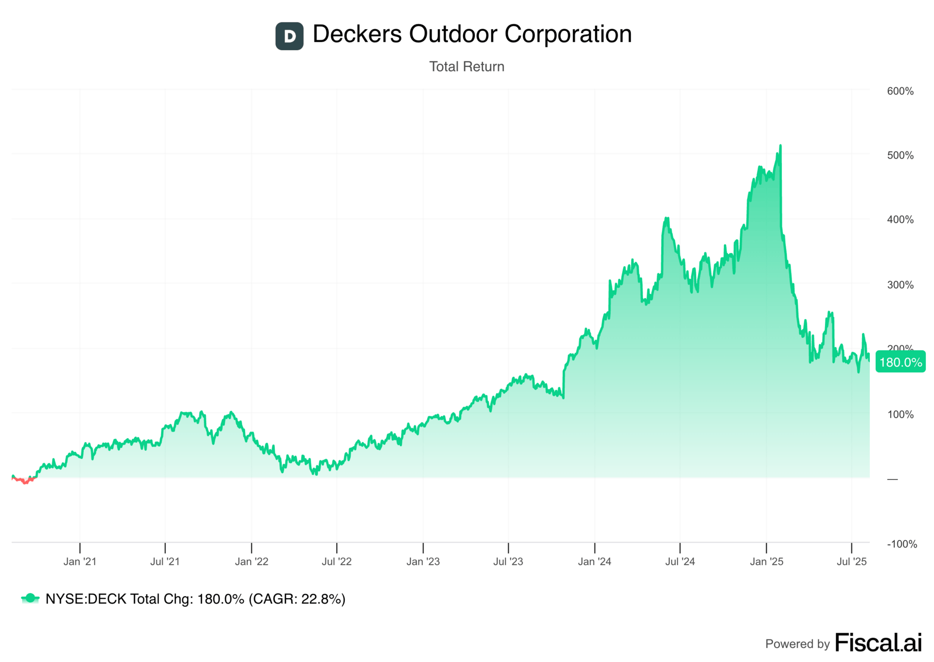 5/ Strong Financial Position – With $1.72B in cash and negative net debt, Deckers is well-covered on liabilities. A 5-year average ROIC of 55.5% highlights exceptional capital efficiency.