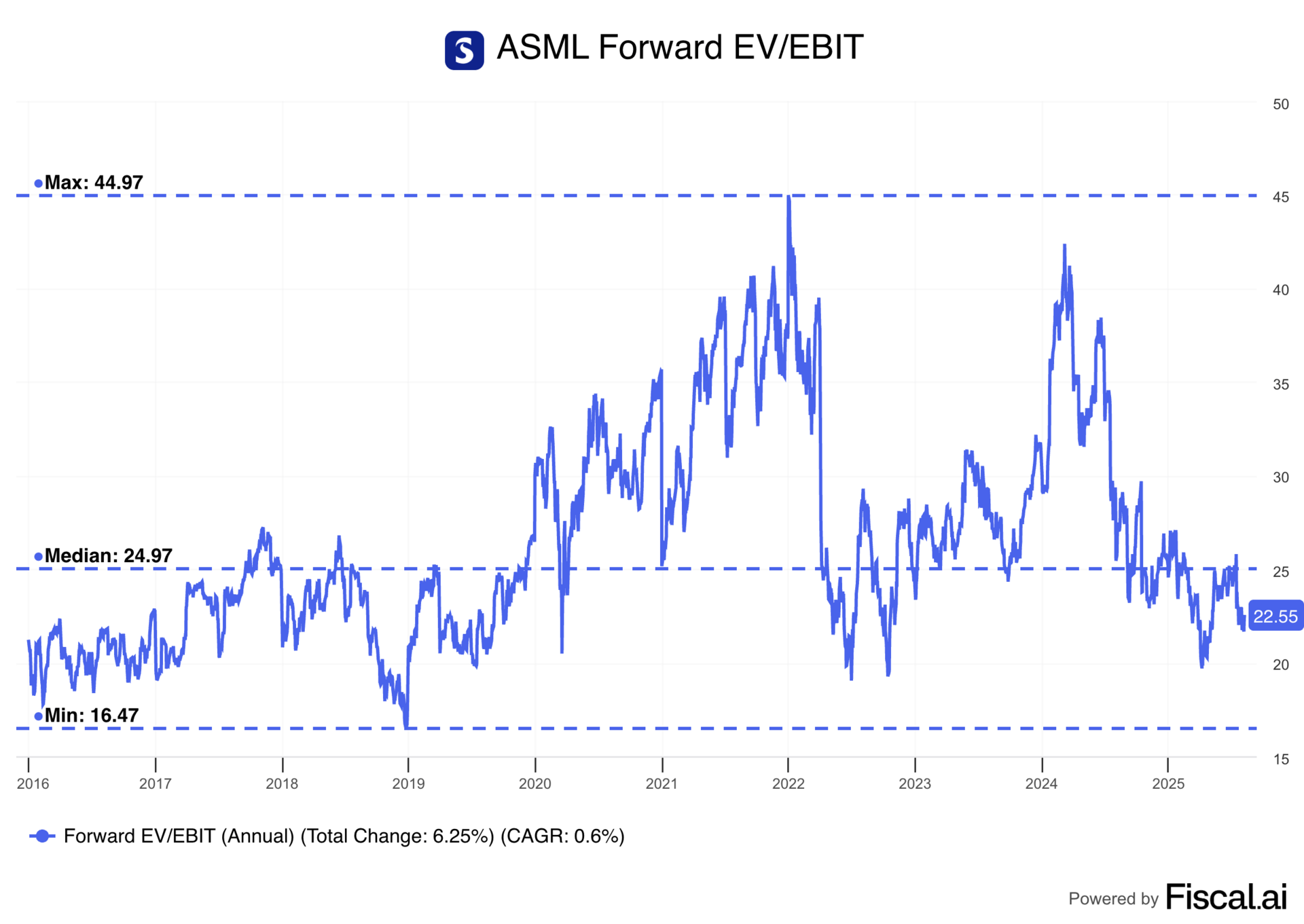 TLDR: ASML’s monopoly in EUV technology, recurring service revenue, and exposure to long-term semiconductor growth make its current valuation attractive given its competitive advantage, though geopolitical risks and industry cyclicality could still create opportunities to buy cheaper if conditions deteriorate.
