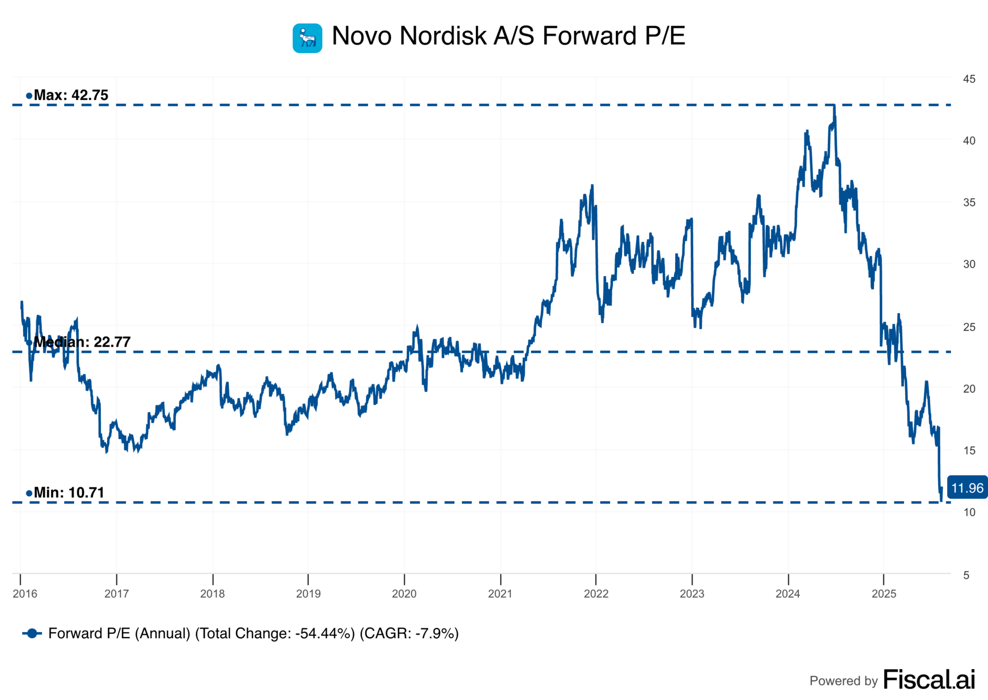 4/ Attractive Valuation – Novo trades at 12x forward earnings with 13% expected operating income growth in 2025 and a 3.7% dividend yield, which has grown at a 5Y CAGR of 22.1%.