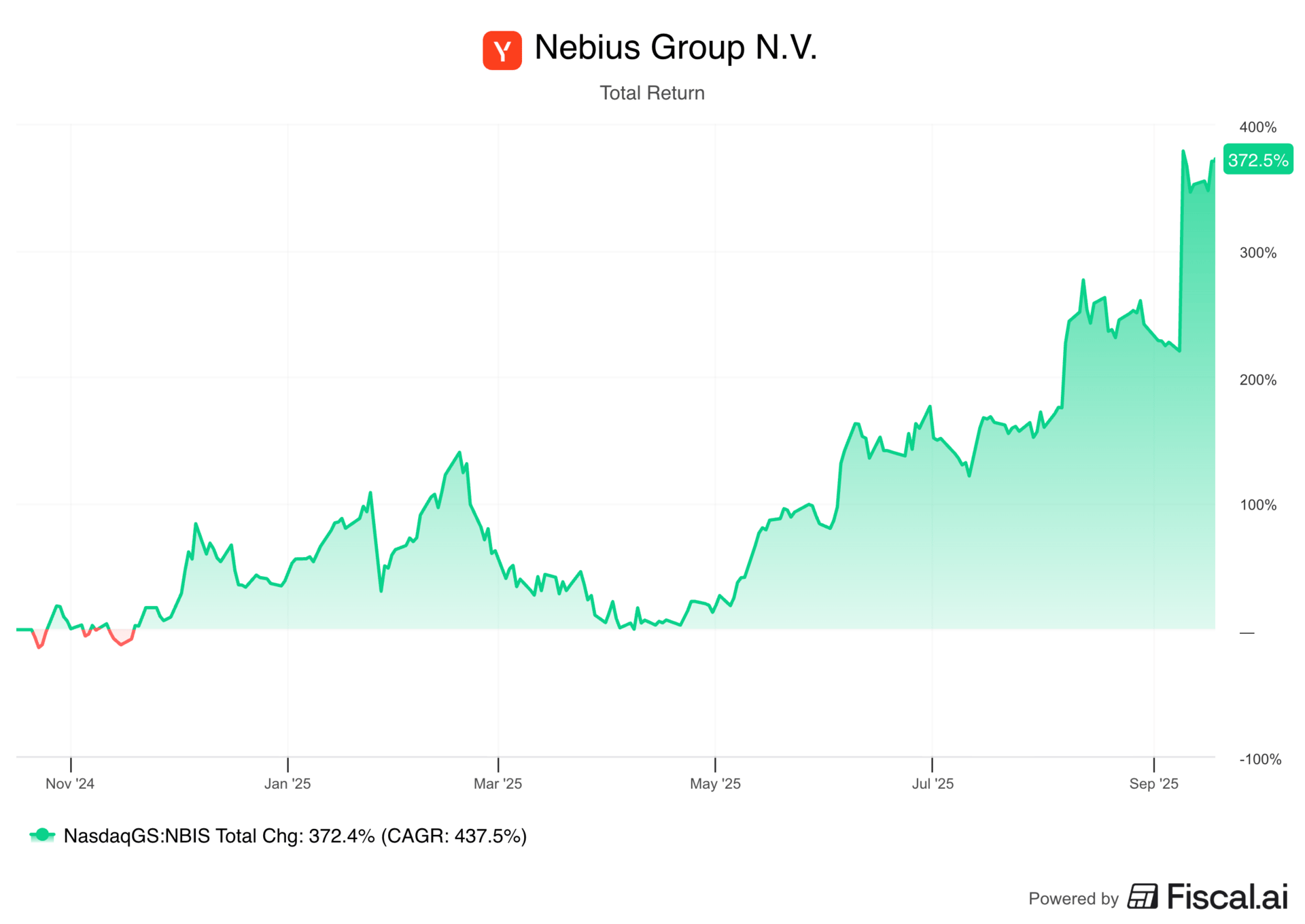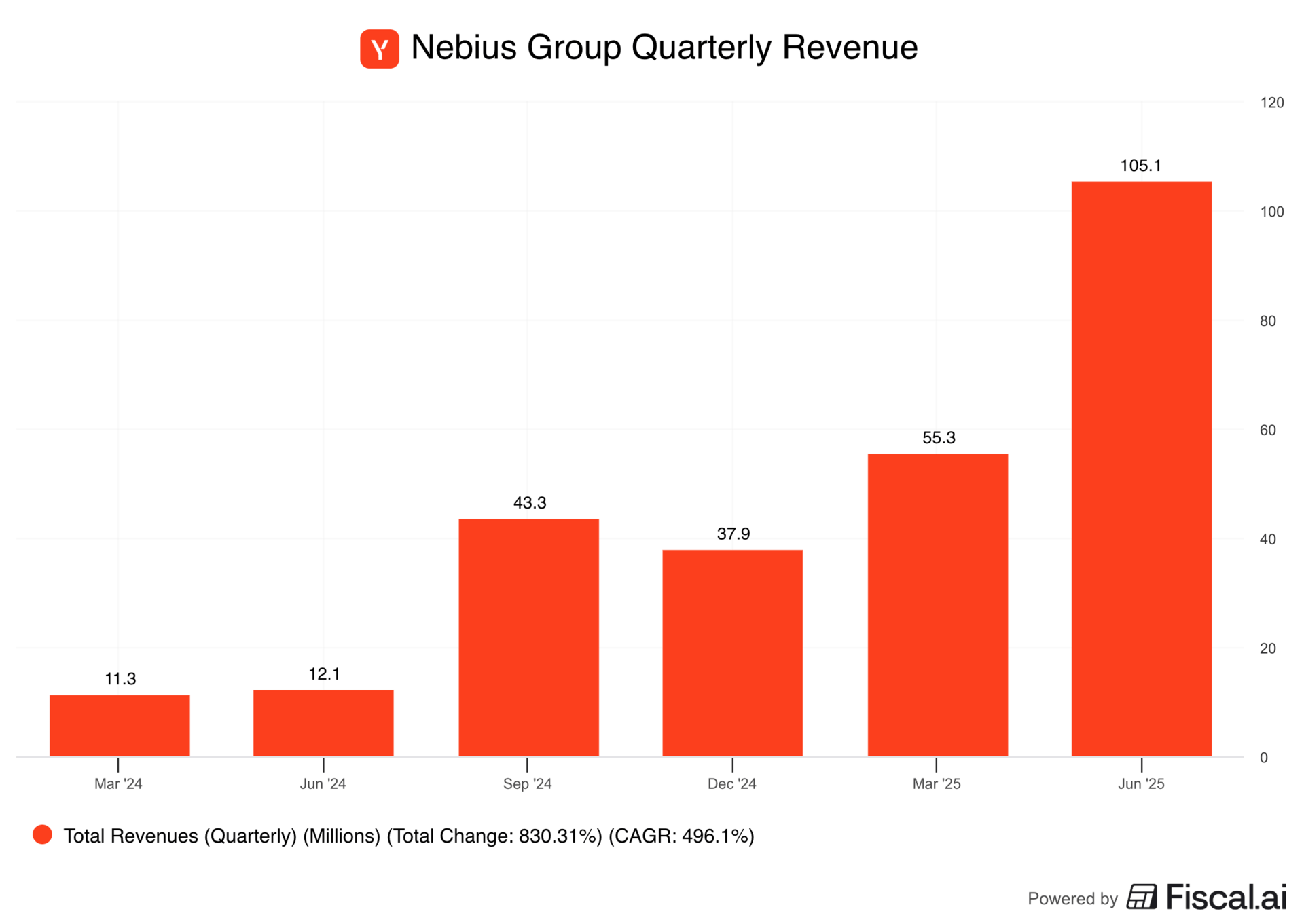 Because Nebius divested from Yandex and listed publicly in October 2024, available financial metrics only cover recent periods, making year-over-year comparisons limited to roughly one year of data.