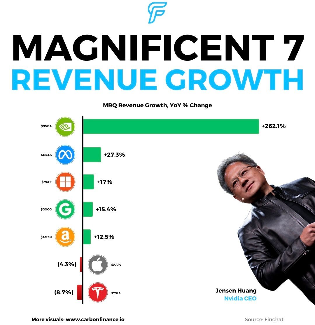 And not all companies in the Magnificent 7 fared well. Both Apple and Tesla saw negative revenue growth.