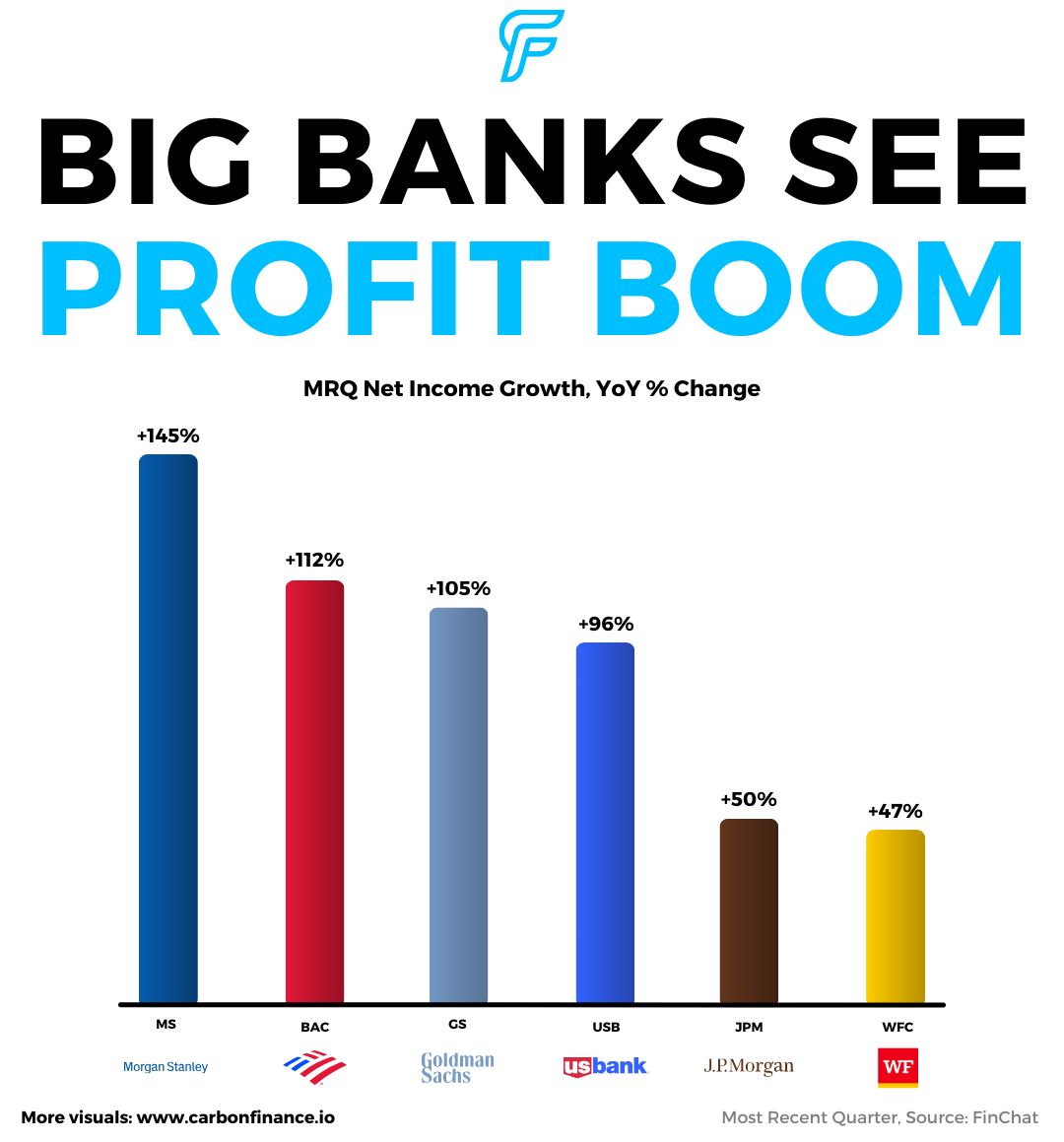Investment banking and trading played a key role, driving gains at Morgan Stanley, Goldman Sachs, and JPMorgan.