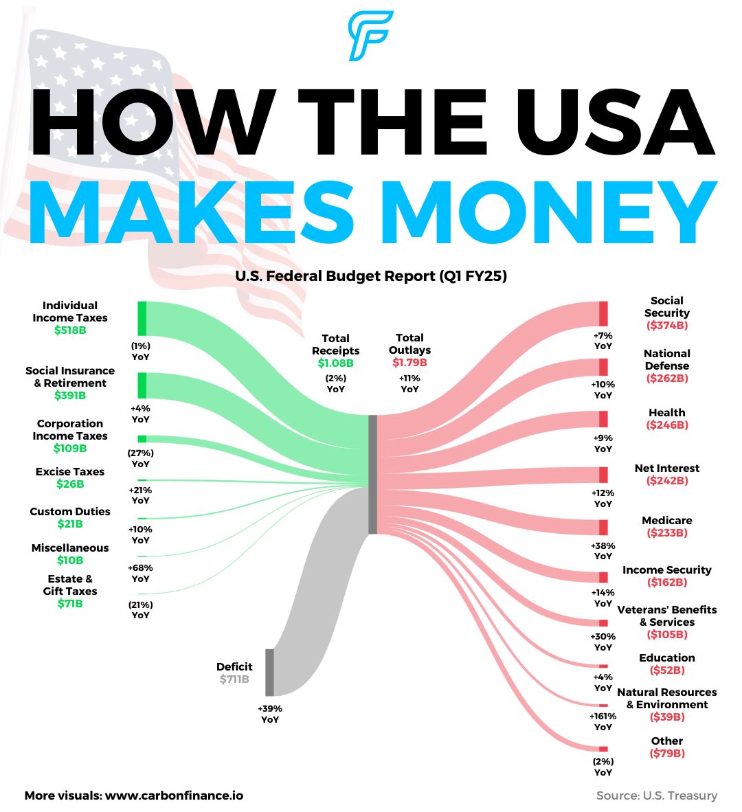 In the first three months of the 2025 fiscal year, the government posted a record $711B deficit.