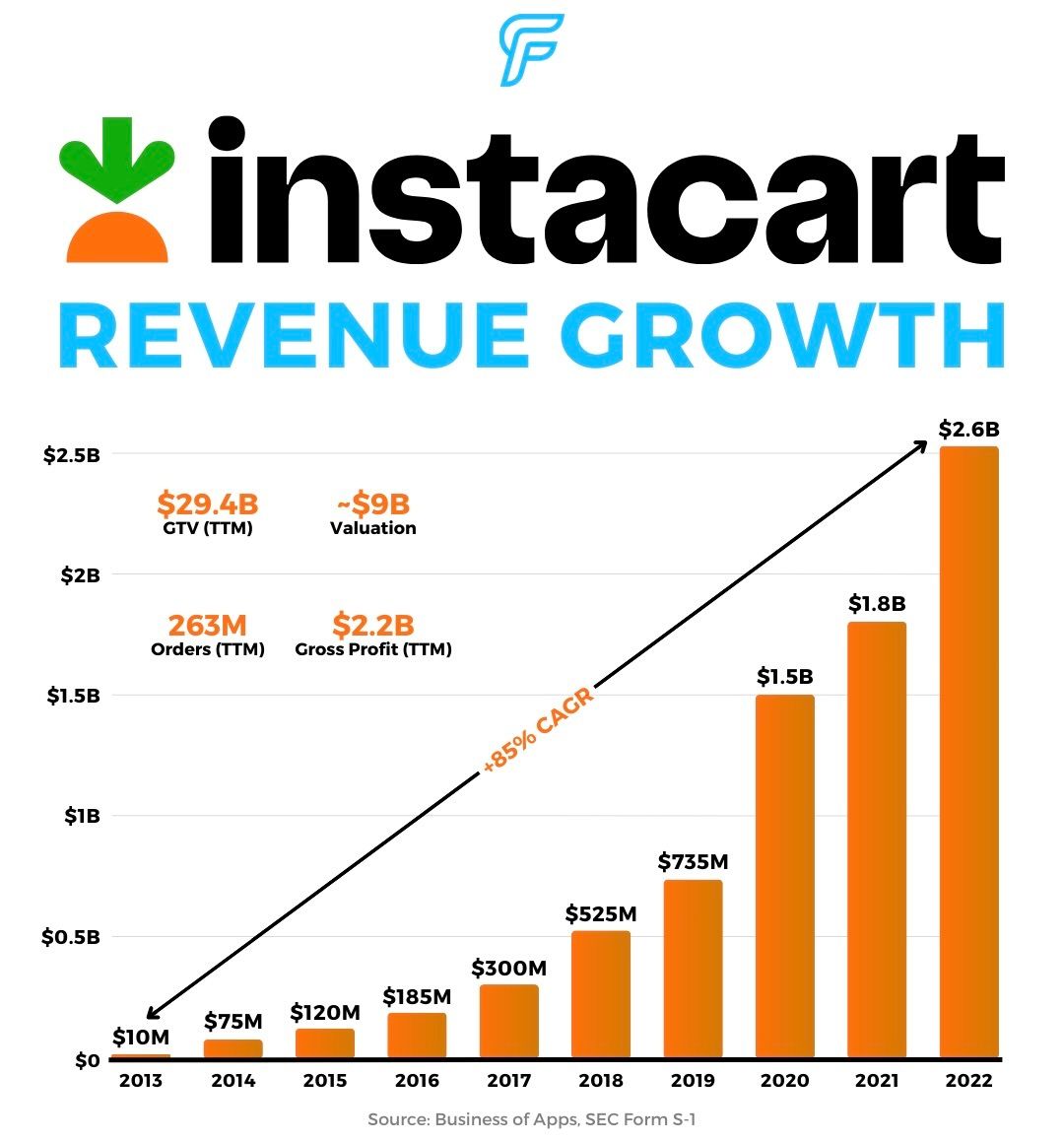 Founded in 2012, Instacart's business boomed in 2020 due to the pandemic, and while its core delivery business growth has slowed, it has diversified into areas like advertising and tech services under CEO Fidji Simo.
