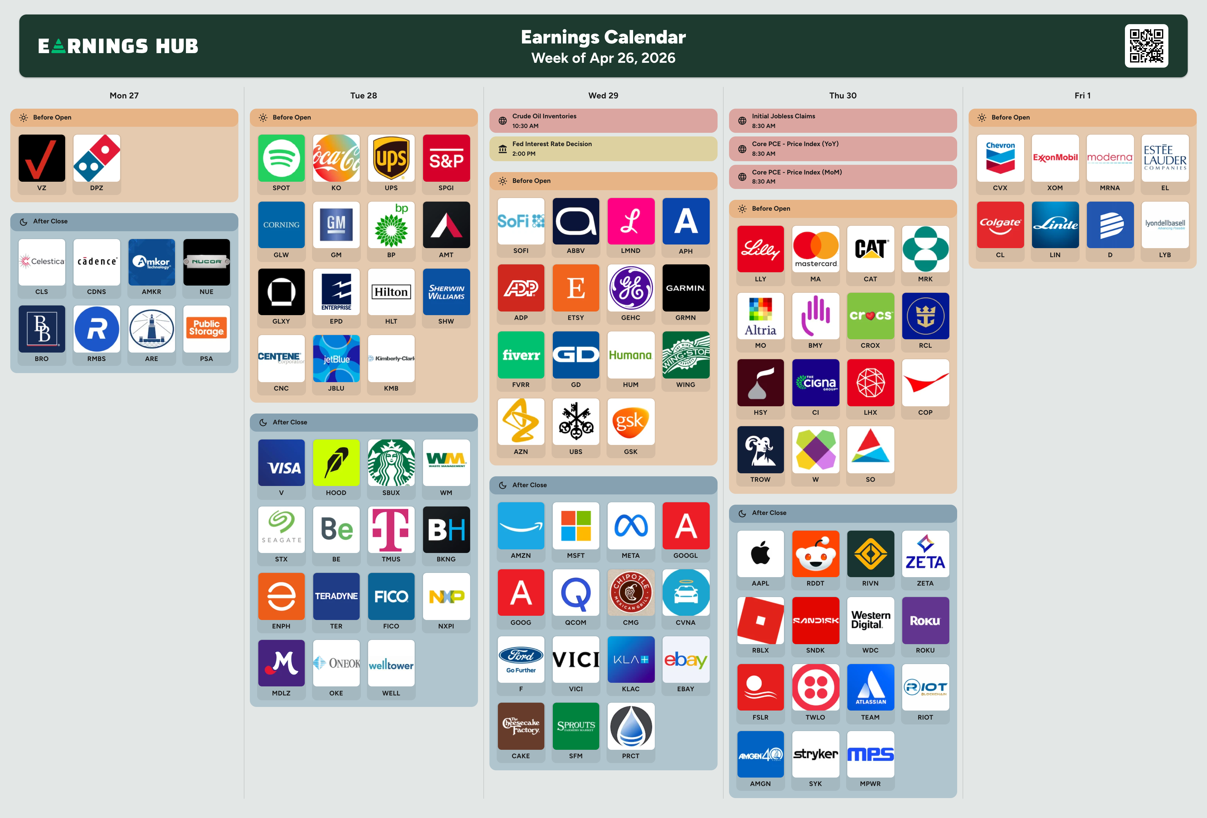 Notable Companies Reporting Earnings Week of April 26th, 2026:
