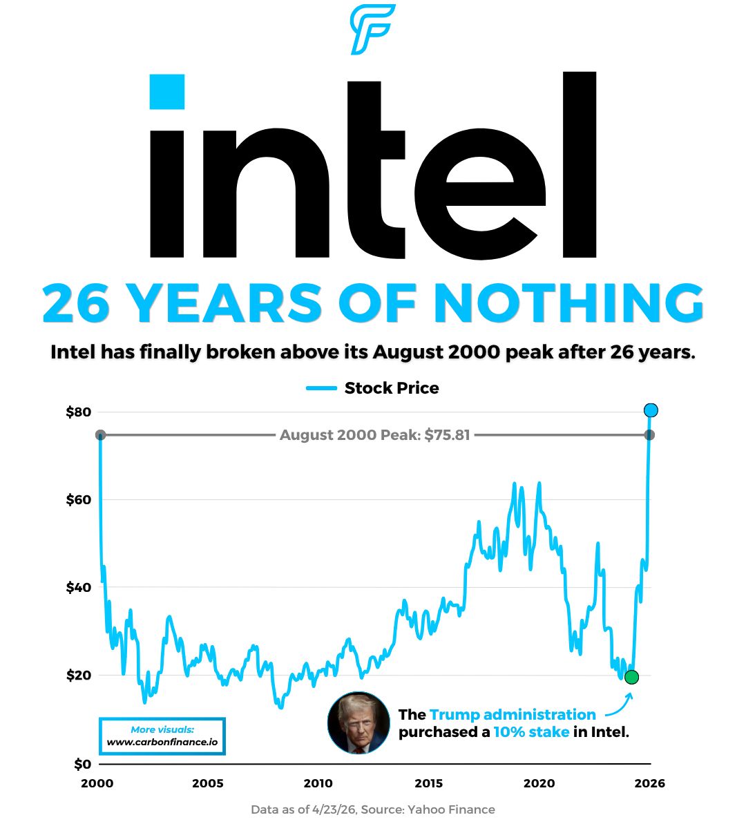 The Trump administration, which acquired a 10% stake in 2025 for $8.9B, has now seen that position rise by over 300%.