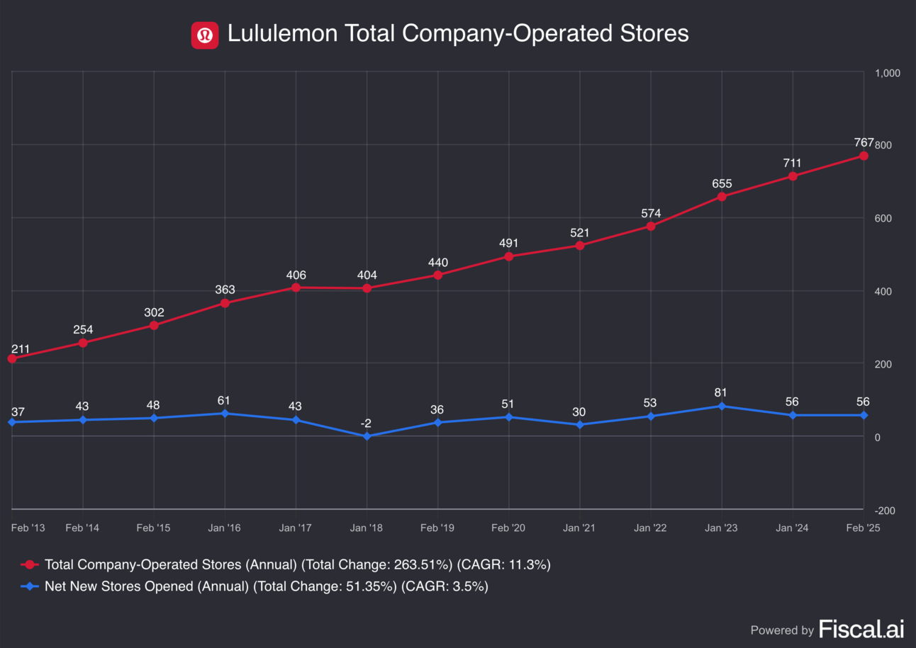 Since 2016, Lululemon has grown revenue at an impressive 20% CAGR.