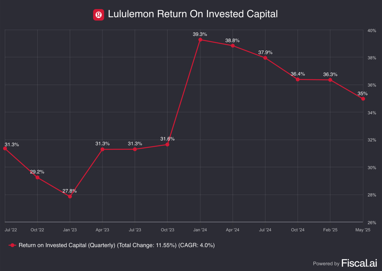 Look no further than Nike: the company once sustained 25%+ returns on invested capital, but that figure dropped to roughly 16% in its latest quarter.
