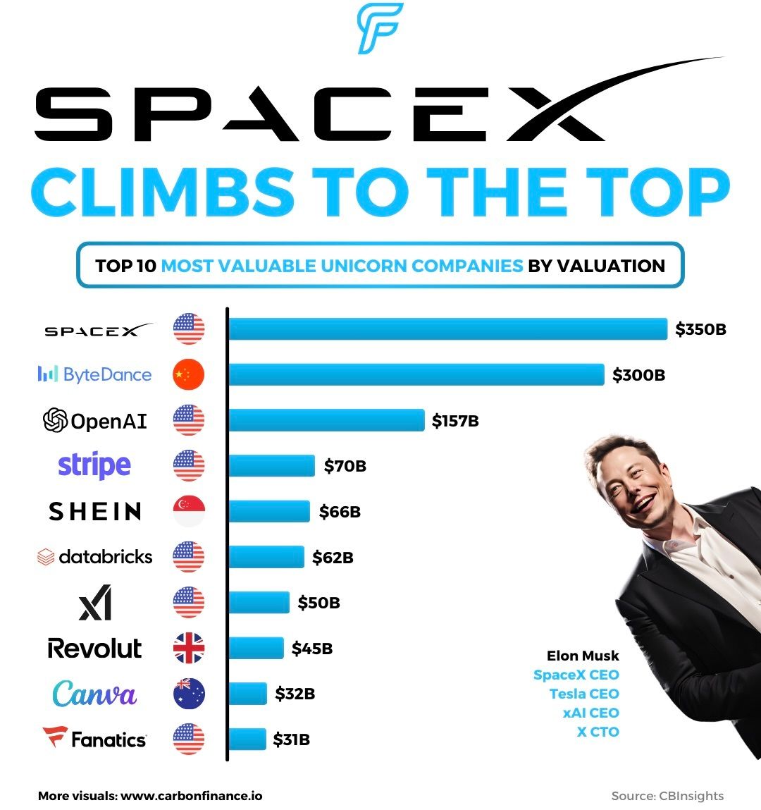 And just two weeks ago, his other company SpaceX completed a $1.25B insider stock purchase, boosting its valuation to $350B.
