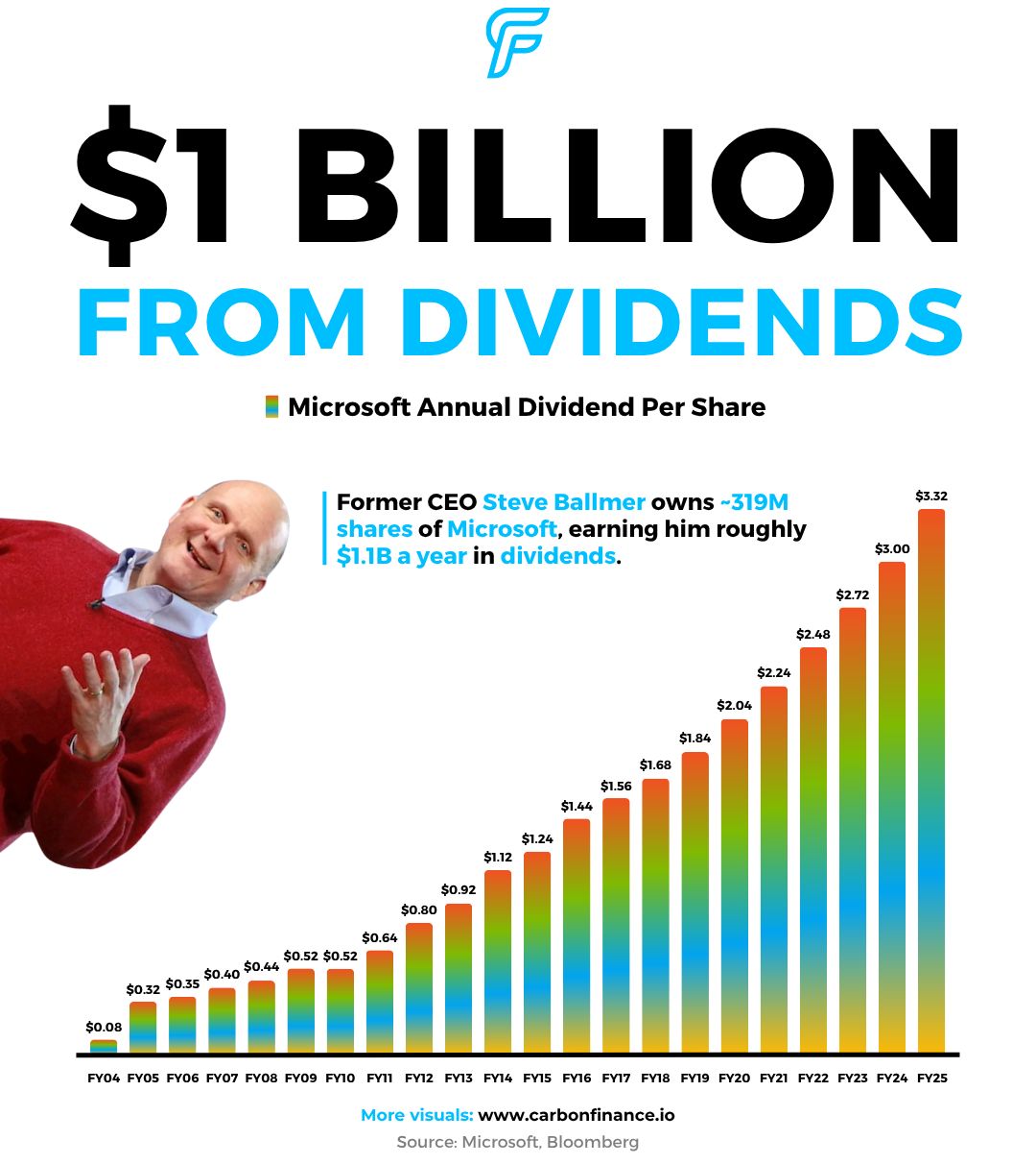 At an annual rate of $3.32, that earns Ballmer nearly $1.1B in dividends each year.