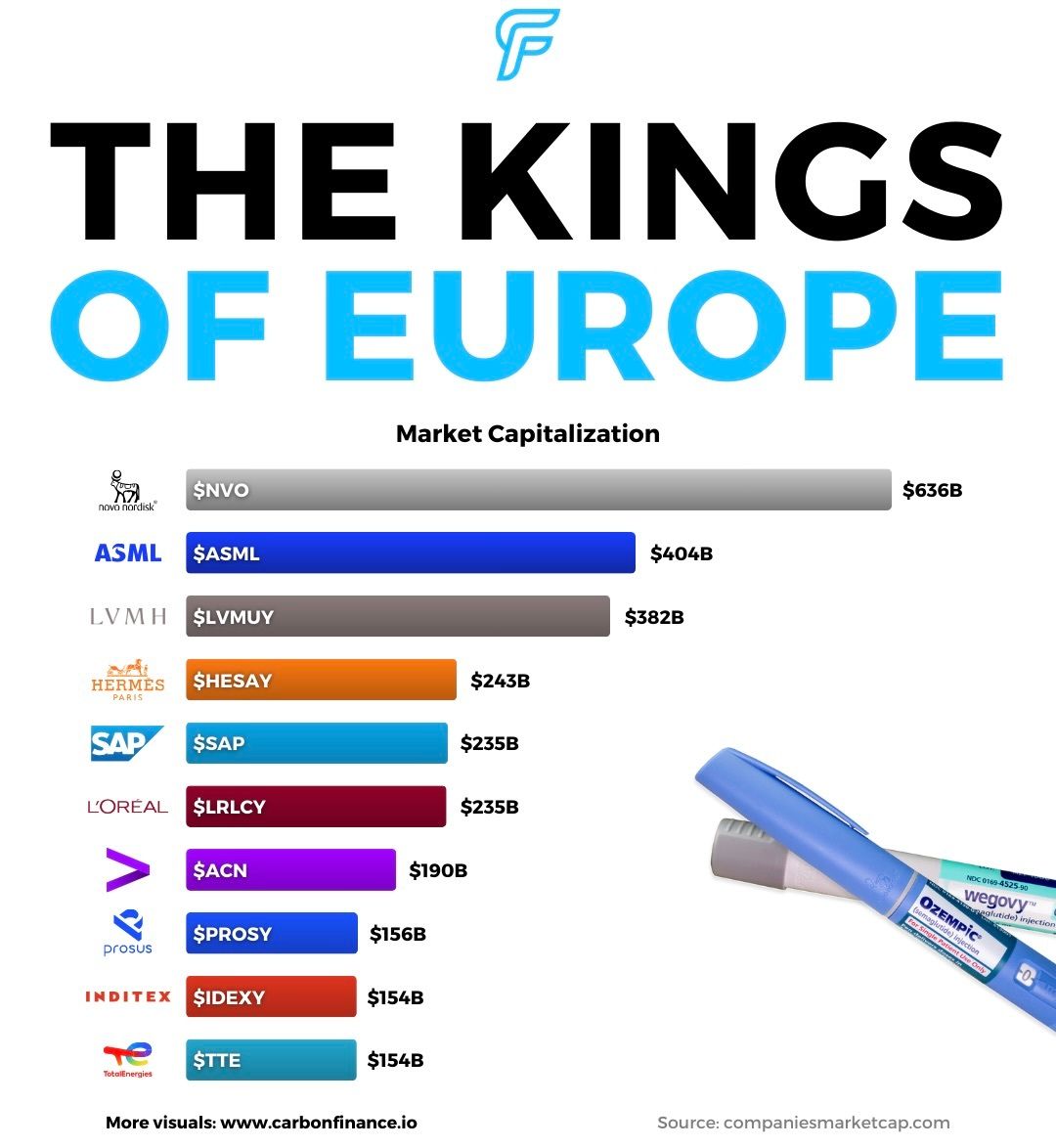 The company now sits comfortably in first place as the most valuable company in Europe, ahead of ASML by roughly $230B.