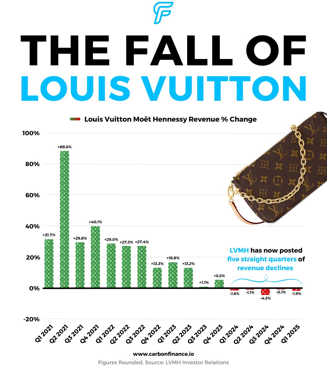 This marked LVMHโs fifth consecutive quarter of revenue declines.