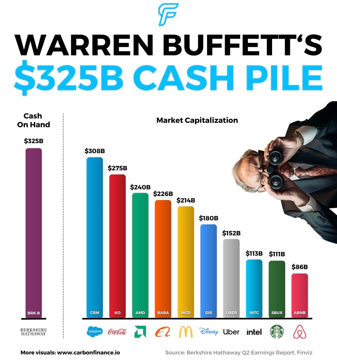 Berkshire Hathawayâs Q3 earnings revealed a record $325B cash pile, up from $277B in Q2.Â
