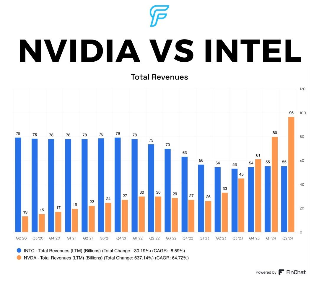 Just four years ago, Intel generated six times the revenue of Nvidia.