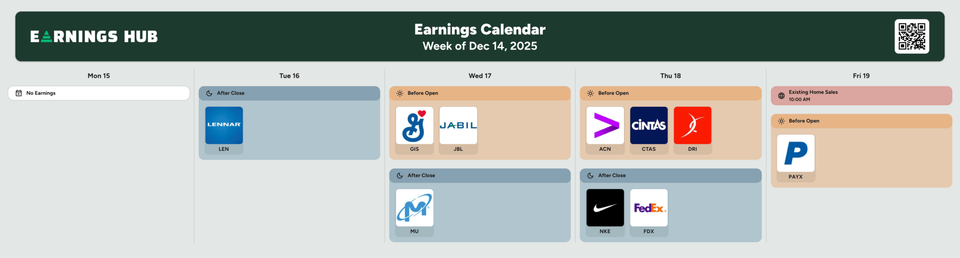 Notable Companies Reporting Earnings Week of December 14th, 2025: