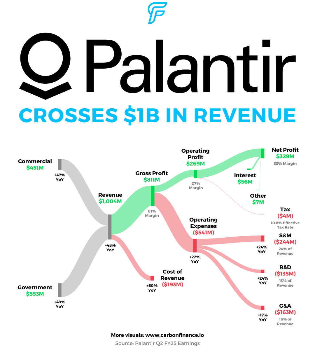 Palantir now boasts a Rule of 40 score of 94%, a rare blend of growth and efficiency.
