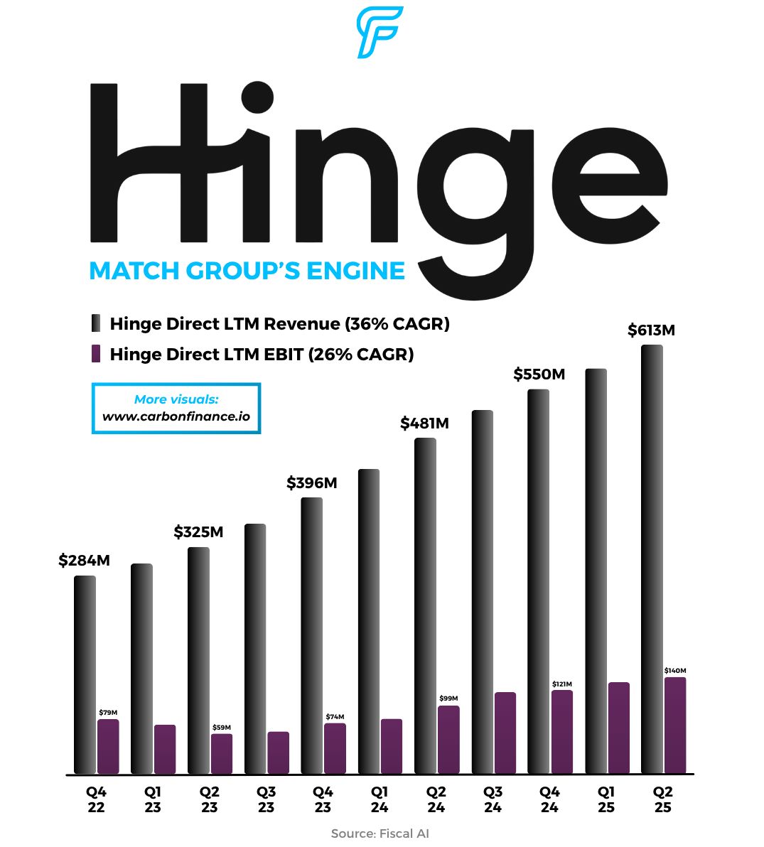 Monthly active users on Hinge also climbed nearly 20% in the first half of 2025, a strong signal of momentum.
