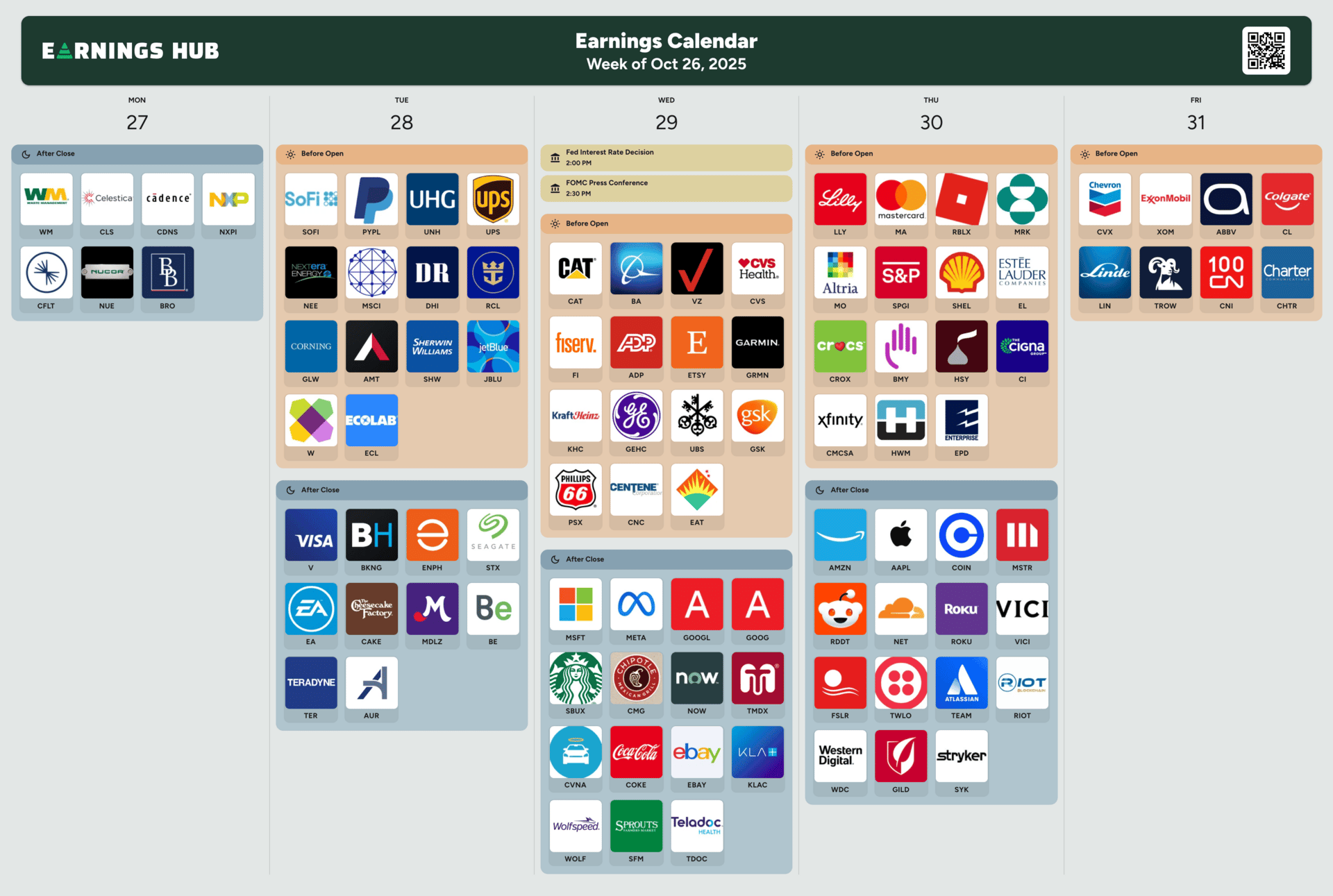 Notable Companies Reporting Earnings Week of October 26th, 2025: