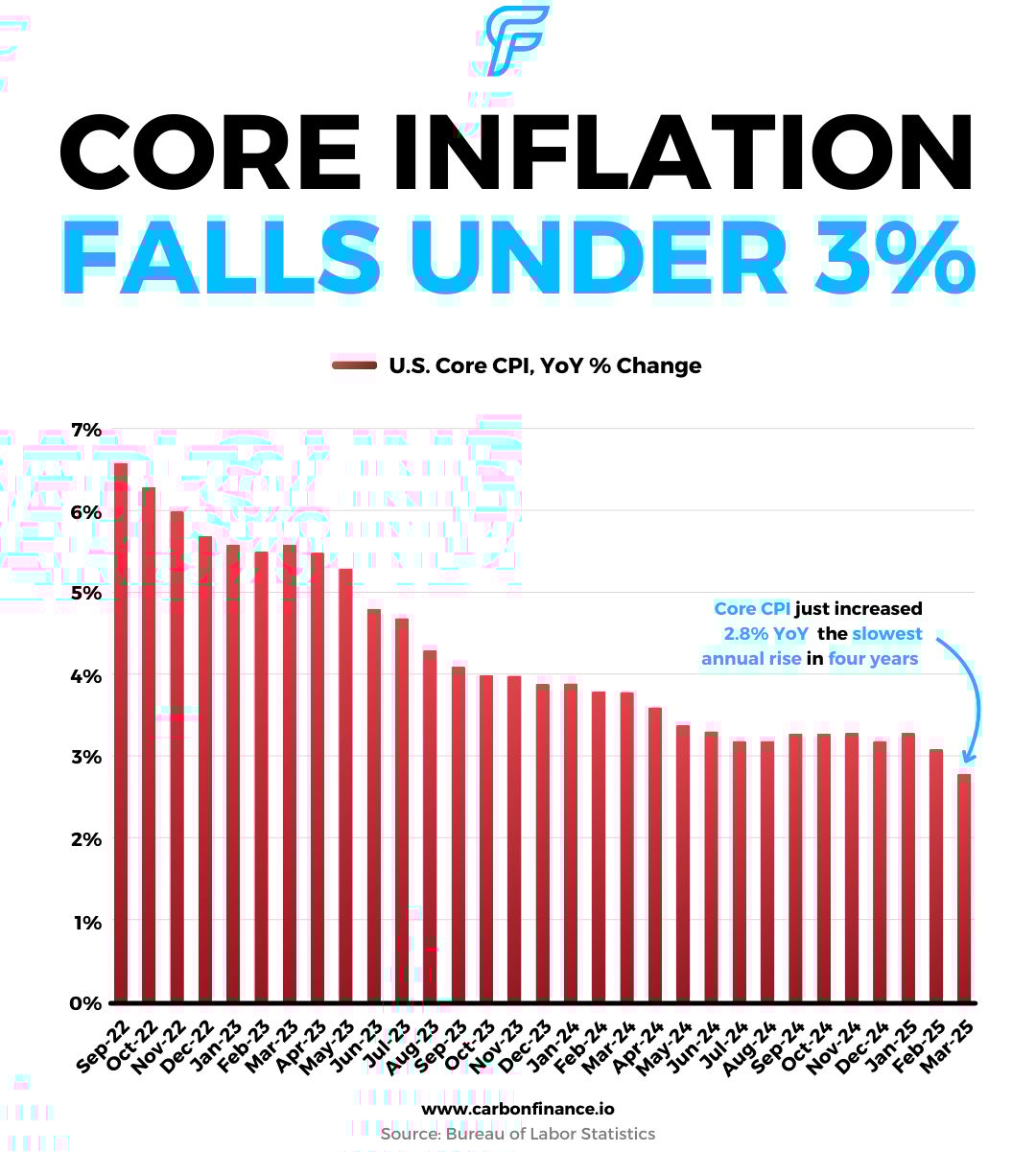 Marchās Core CPI came in at a 2.8% annual rate, below the 3% estimate and the lowest since March 2021.