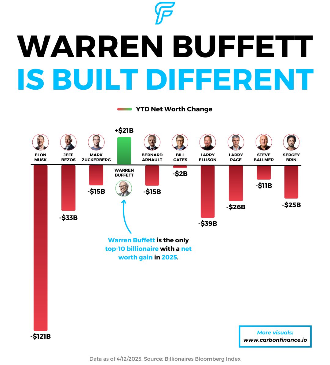 While many of the worldās richest have seen their net worths tumble during the recent market selloff, Warren Buffett is still in the green.