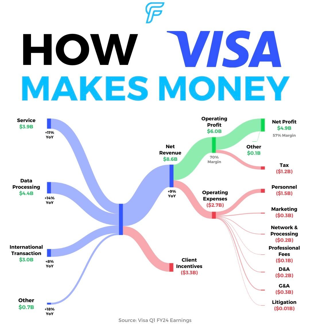 Looking ahead to the full-year 2024, Visa is projecting low double-digit growth in both net revenues and earnings per share.