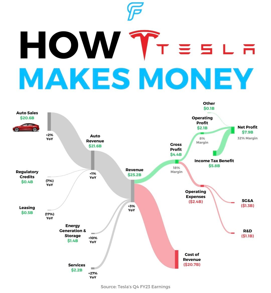 A notable point was Tesla's net income, which doubled for the quarter. This surge, however, was largely due to a one-time, non-cash tax benefit of $5.8B.