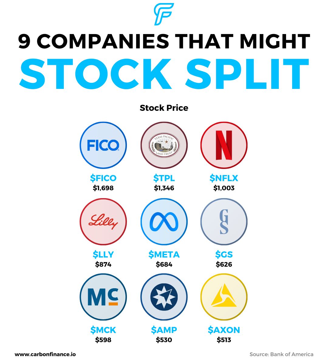 BofA identified nine potential split candidates, selecting companies with: