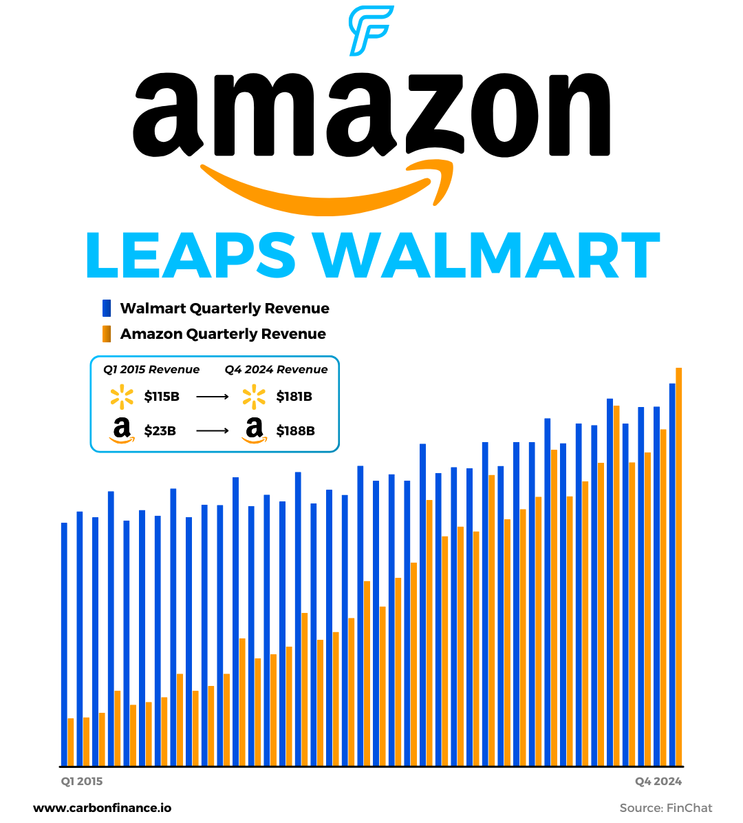 Walmart reported $181B in revenue this week, while Amazon, which reported earlier in the month, posted $187.8B.