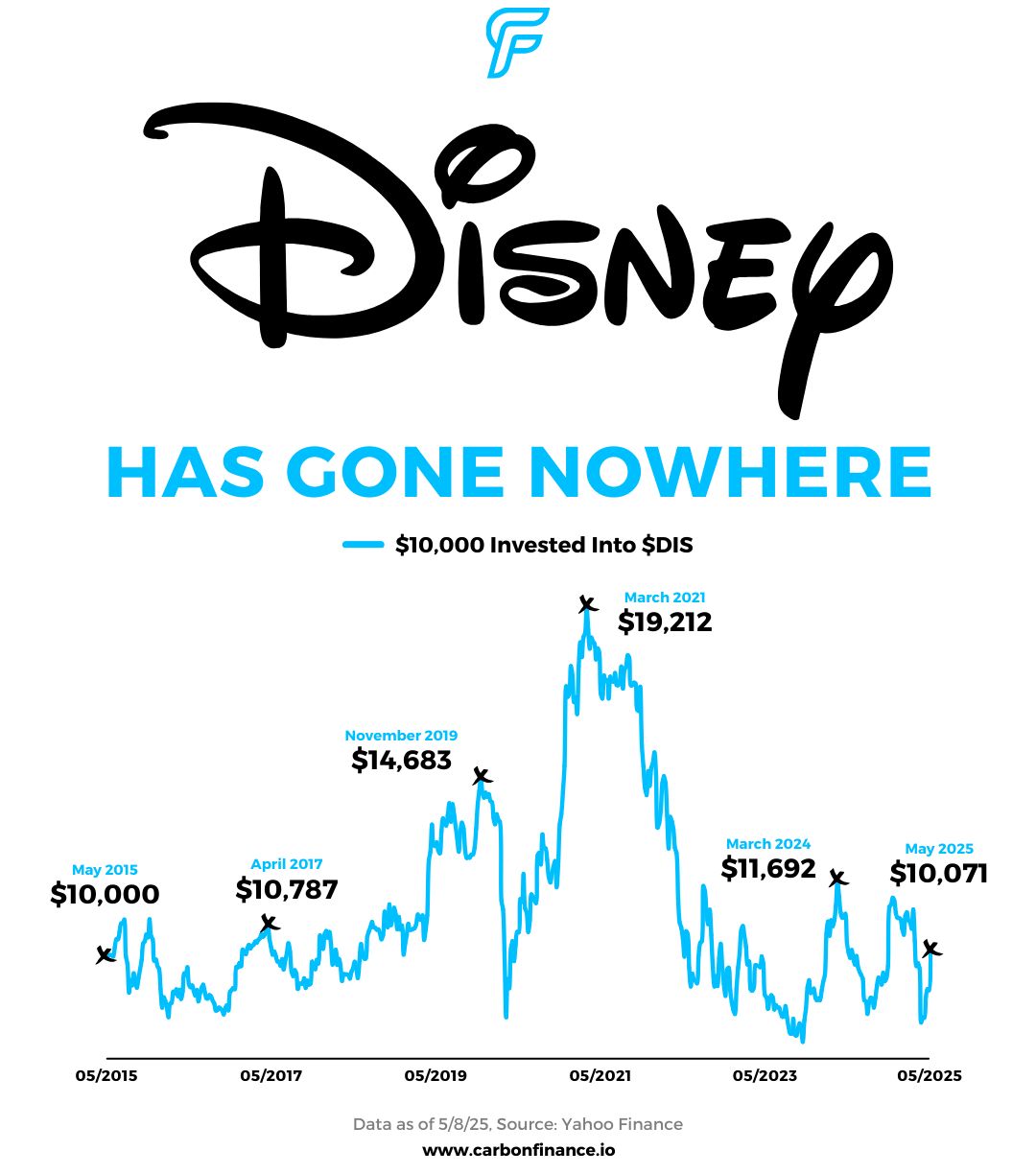 And zooming out, Disney’s stock has been essentially flat over the past decade.